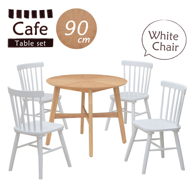セミオーダー 脚カット 高さ70cm 丸 ダイニング カフェテーブルセット 90cm 4人掛け sbbt90-5-puri371wh pia ナチュラルオーク色 ホワイト色 光線張り 北欧 カフェ風 ラウンド テーブル ウィンザー チェア 木製 シンプル おしゃれ かわいい 20s-3k so tn