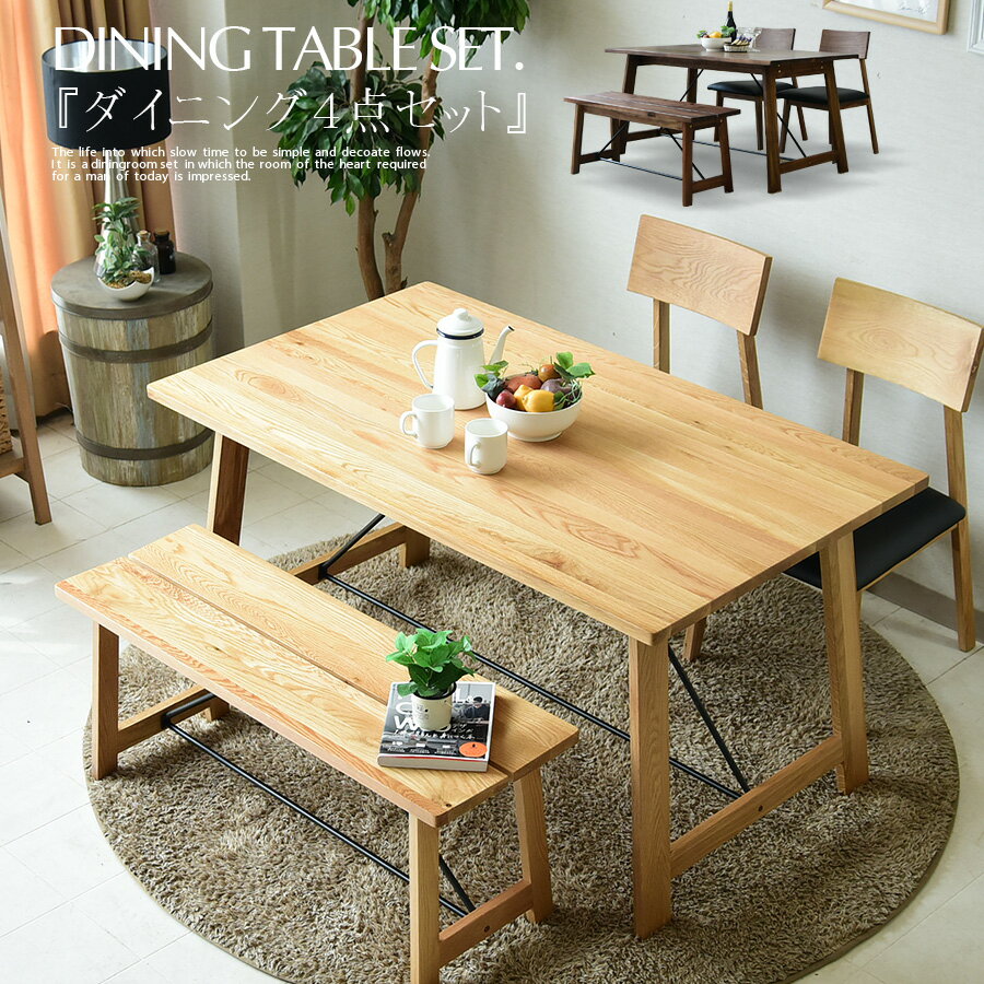 * 3%OFFクーポン 配布中4/28 1:59迄 135cm ダイニングセット ベンチ 4人掛け 4点セット 4人用 ダイニングダイニングテーブルセット カントリー ブルックリン 北欧 テーブル モダン オシャレ 大人気 食卓