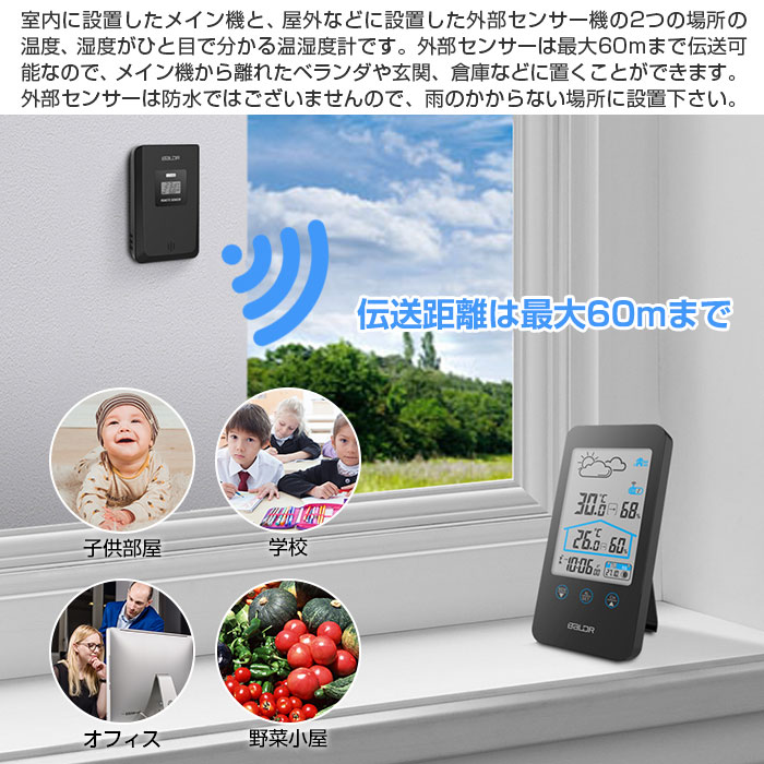 ご自宅、学校、オフィスなどでの温度湿度の管理にオススメです。
