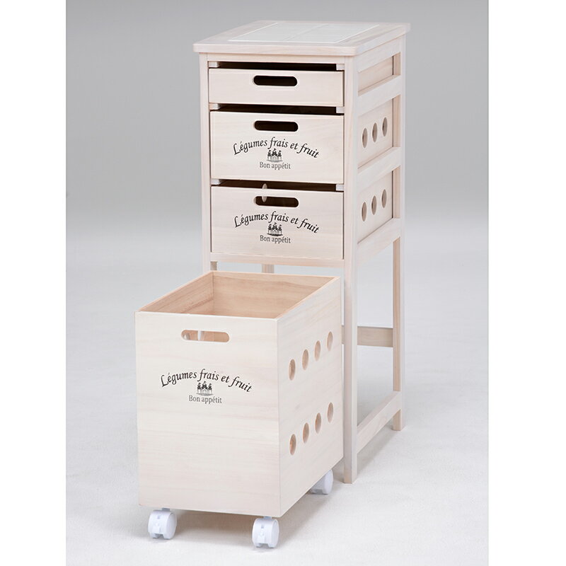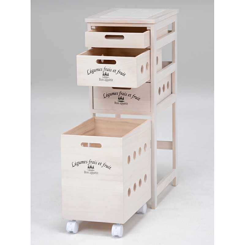 送料無料 キッチンワゴン キャスター付き 完成品 キッチンストッカー ゴミ箱 木製 すき間収納 隙間収納 幅30cm 引き出し 4段 サニタリーラック ランドリーラック キッチンラック 収納家具 チェスト コンパクト リビング おしゃれ 白 ホワイトウォッシュ MUD-6904WS